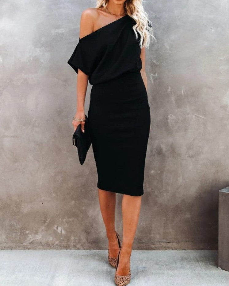 Naam: Iselin™ – Effen commuter dress met korte mouwen