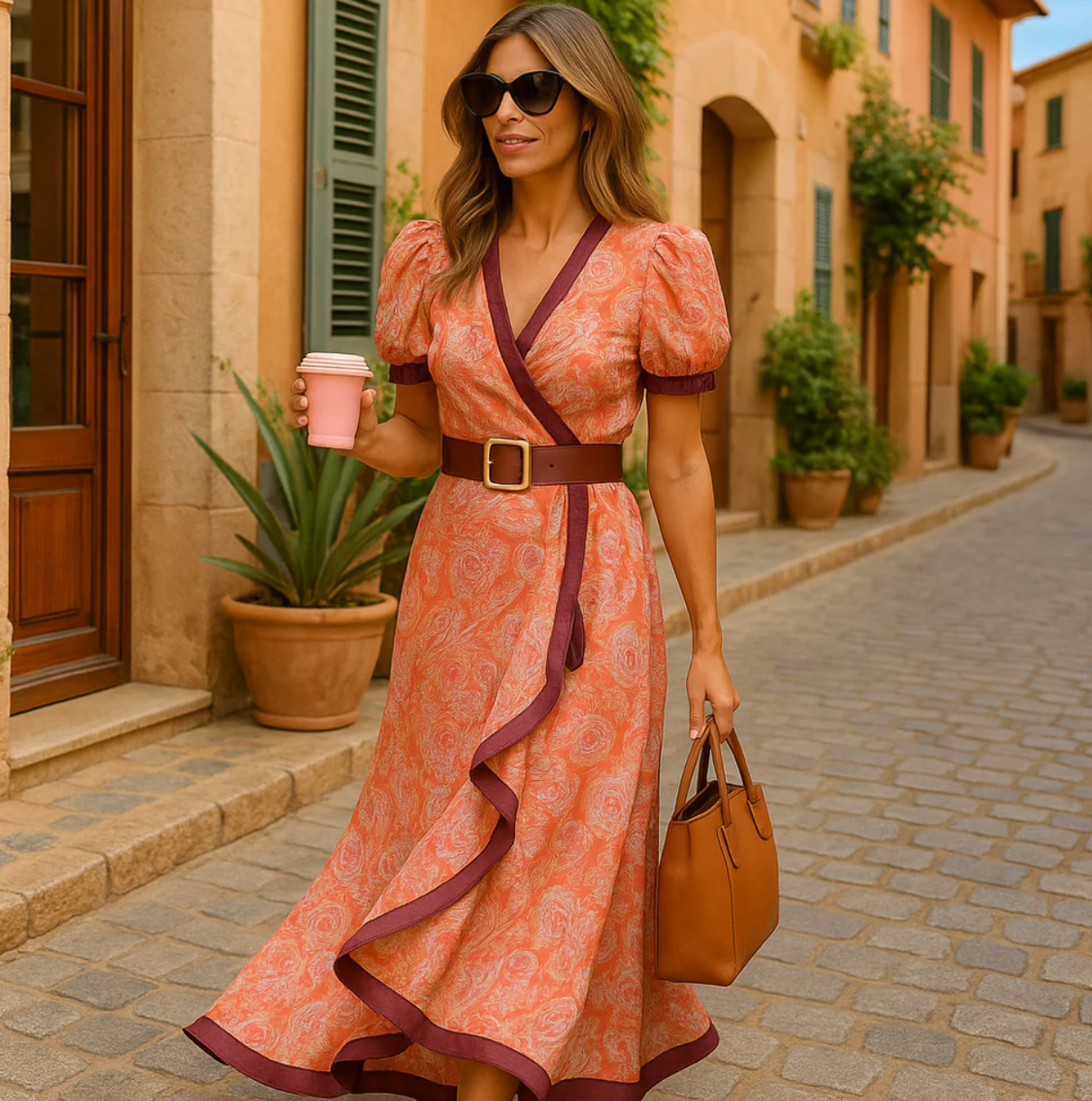 De korte mouwen en het elegante maxi-lengte ontwerp geven Lieve™ een vrouwelijke uitstraling die meebeweegt met elke stap. Het subtiele drapeereffect rond de taille flatteert je figuur zonder te knellen, terwijl de ademende stof je koel houdt – perfect voor elk seizoen.