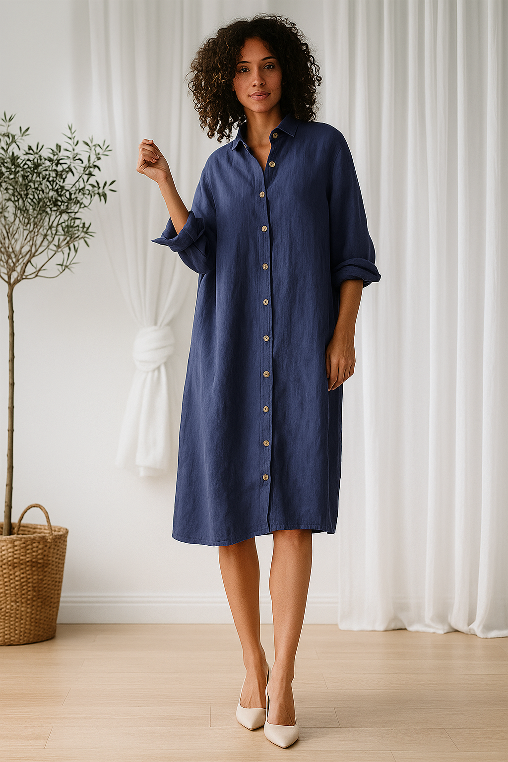 Deze luchtige overhemdjurk is de perfecte mix van comfort, kleur en karakter – kreukvrij én vol stijl.