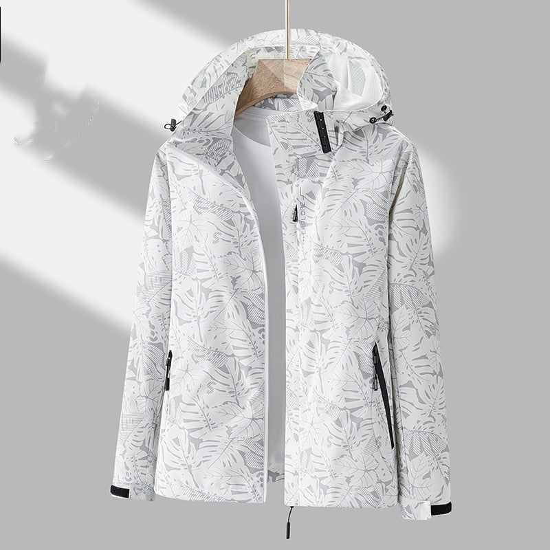 Details: Bladmotief, capuchon afneembaar, ritssluiting, verstelbare mouwen
